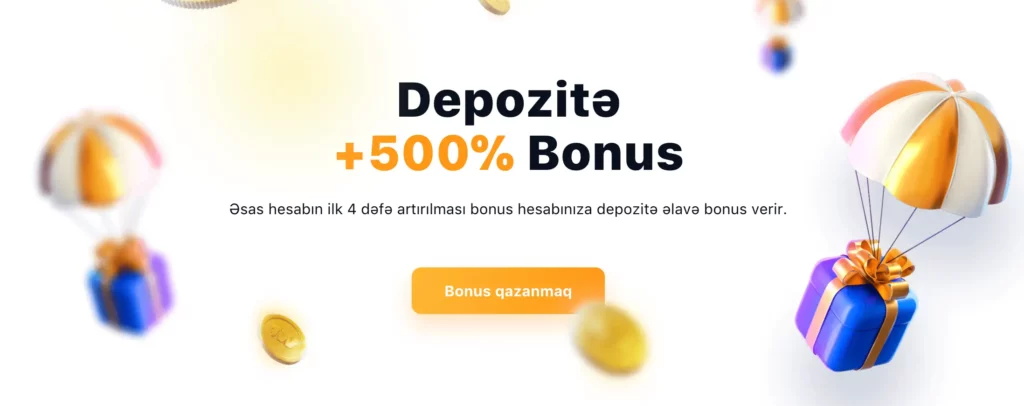 - Xoş Gəldin Bonusu: İlk dörd depozit üzrə +500% depozit bonusu (450$-a qədər)